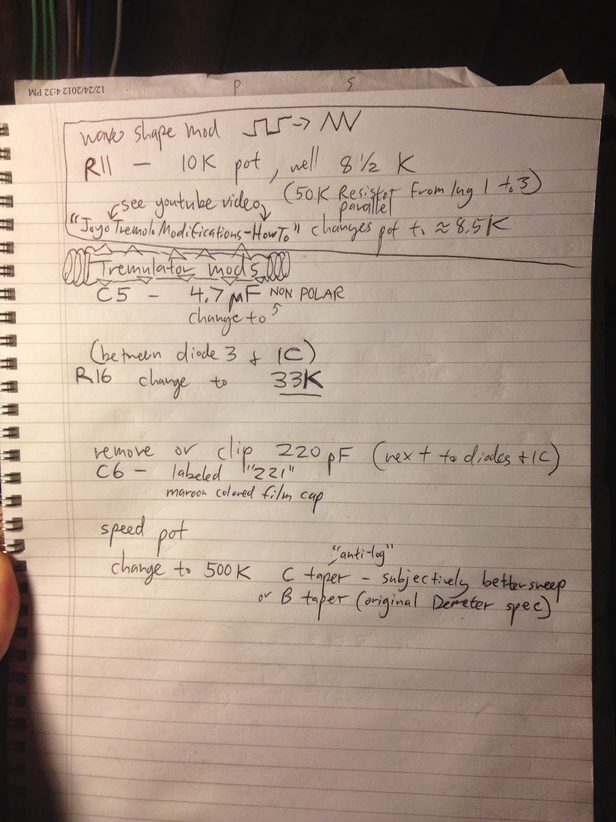 http://youtu.be/aB5xV99VXKI He also has a square to triangle wave shape pot mod that I skipped. I found one more improvement on his mods as well, he didn't change the rate pot to Demeter value. Without this mod the rate pot has a very bad range.